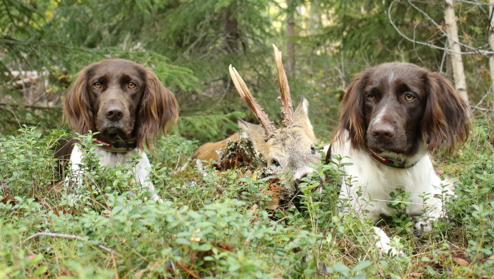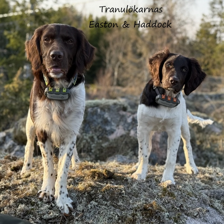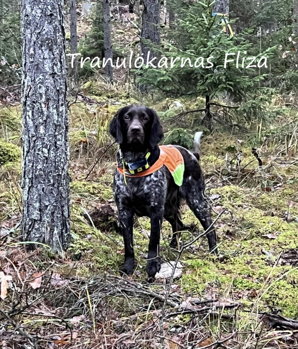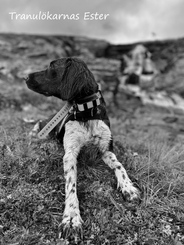 "Vill berätta om Ester i helgen. Jag går ju en hel del eftersök med henne som du vet. I helgen var det en skytt som hade skjutit mot ett vildsvin men grisen hade inte tecknat och han trodde att det var bom. Jag litar aldrig på skyttarna så jag ville skapa min egen uppfattning om vad som hade hänt innan jag skrev av det. Jag kom till skottplatsen, hittade inte något blod eller hår eller någonting. Bestämde mig för att gå en bit på spåret och efter ca 200 m så ställde sig Ester som för fågel för en buske. Hon gör dock det för rådjur, vildsvin och hare också så jag gjorde mig beredd, släppte henne och skickade fram henne. Busken var tom och medans jag gick igenom busken för att se om jag hittade något så försvann Ester. Jag tänkte att: typiskt, nu har hon väl bytt till något annat vilt för att det inte var skadat men när jag kollade på gpsen så såg jag att hon stod igen fast ca 300 m bort. Men innan jag hunnit plocka ihop allt för att gå och hämta henne så kom hon tillbaka till mig. Och sedan stack hon iväg igen till samma ställe. Jag tänkte att det här måste vi kolla och när jag hunnit halvvägs dit så hör jag henne skälla ståndskall mot en gran. Jag smyger fram och ser grisen som gör utfall mot henne men när den får syn på mig så får den fart. En skytt som jag hade med mig lyckades då skjuta grisen och när vi kom fram så upptäckte vi att det första skottet hade suttit på örat. Även om grisen säkert hade klarat sig bra så var det så otroligt coolt att se hur duktig Ester har blivit och hur fint hon samarbetar med mig som hundförare. Följa ett spår utan att byta, komma och rapportera när hon hittat djuret och sedan gå tillbaka till djuret med mig. En riktigt bra avslutning på den här jaktsäsongen tycker jag! Förutom denna helg så har hon jagat väldigt mycket i år och det har släppt när det gäller drevjakten för henne! Hon letar djur efter djur, har jättefina drev och samtidigt kan hon byta till fågel när det är det som det finns mycket av och ha jättefina stånd. På eftersök så har hon löst många jobbiga fall, allt ifrån att hitta hjort som varit dåligt skjutet, dragit ner skadeskjutet rådjur, spårat fram till grisar osv. Tack för en riktigt rolig jaktkompis!"