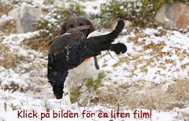 "Nyss kommit hem från några dagar på fjället tillsammans med 7 andra hundar - vorsteh, pointer, setter, breton (typiska stående fågelhundar). Vi skjuter totalt 43 ripor varav 15 för Caesar. Alla så imponerade av denna hund. Han är grym på att hitta fågel och står så bra. Vid sidan av jakten är han den coolaste av dom alla. Kan återigen bara gratulera dig till en fin uppfödning!