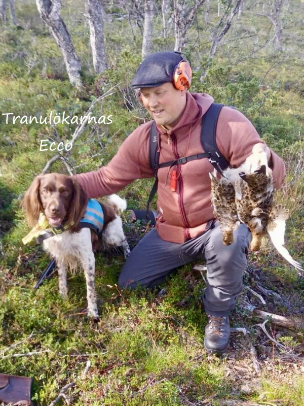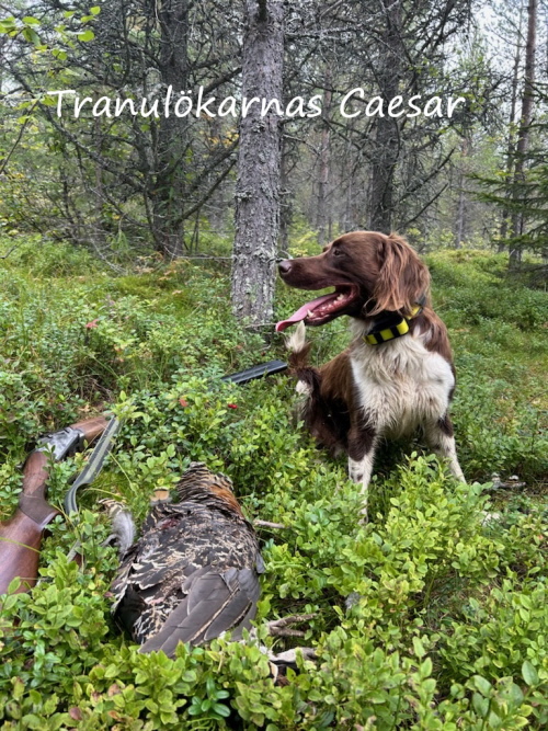 "Nyss kommit hem från några dagar på fjället tillsammans med 7 andra hundar - vorsteh, pointer, setter, breton (typiska stående fågelhundar). Vi skjuter totalt 43 ripor varav 15 för Caesar. Alla så imponerade av denna hund. Han är grym på att hitta fågel och står så bra. Vid sidan av jakten är han den coolaste av dom alla. Kan återigen bara gratulera dig till en fin uppfödning!